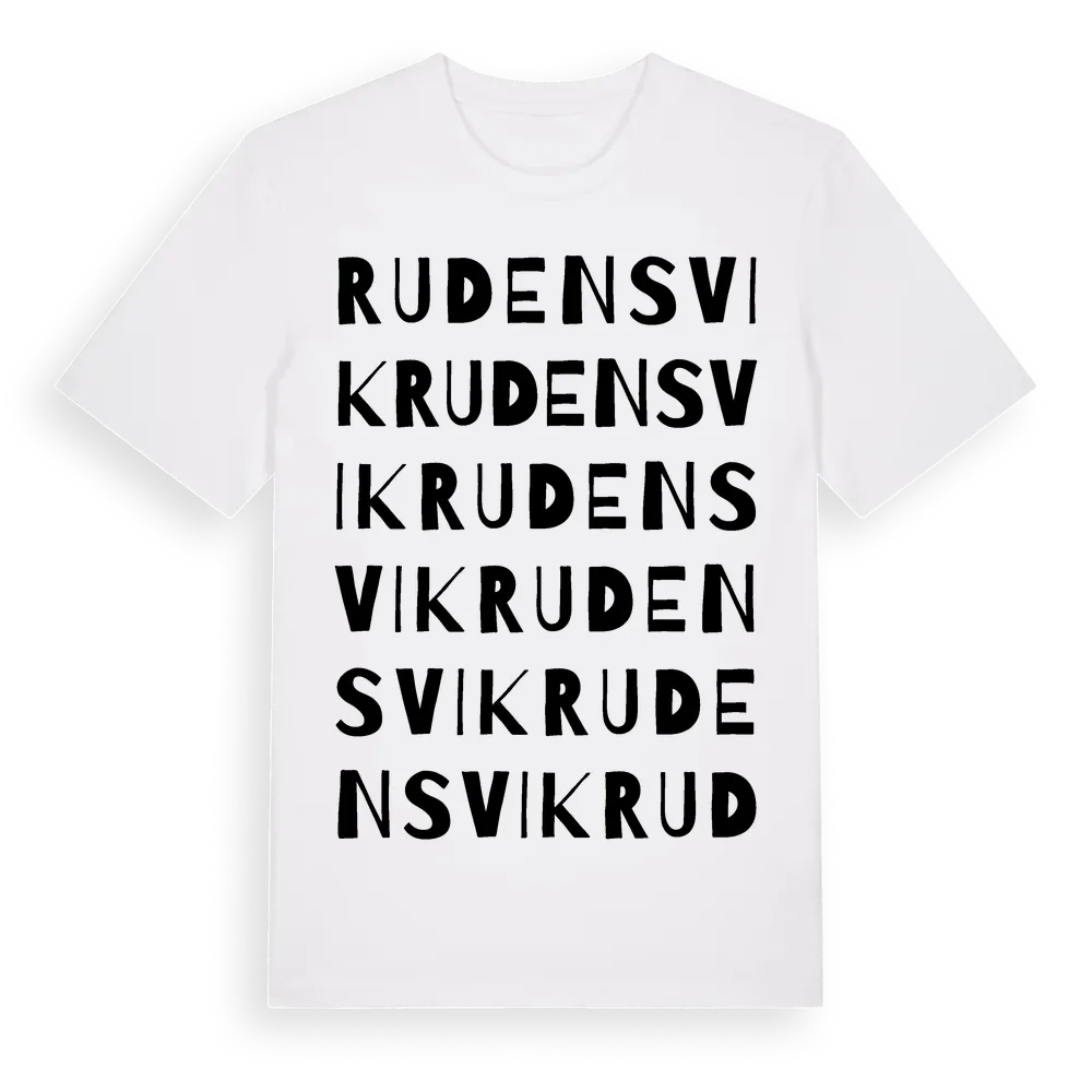 Rudensvik ordlek t-shirt är inspirerad av Rudensvik i Örebro län, Sverige. Tröjan är designad för dig som har en speciell koppling till platsen – oavsett om du bor här, har rötterna här eller bara älskar Rudensvik.