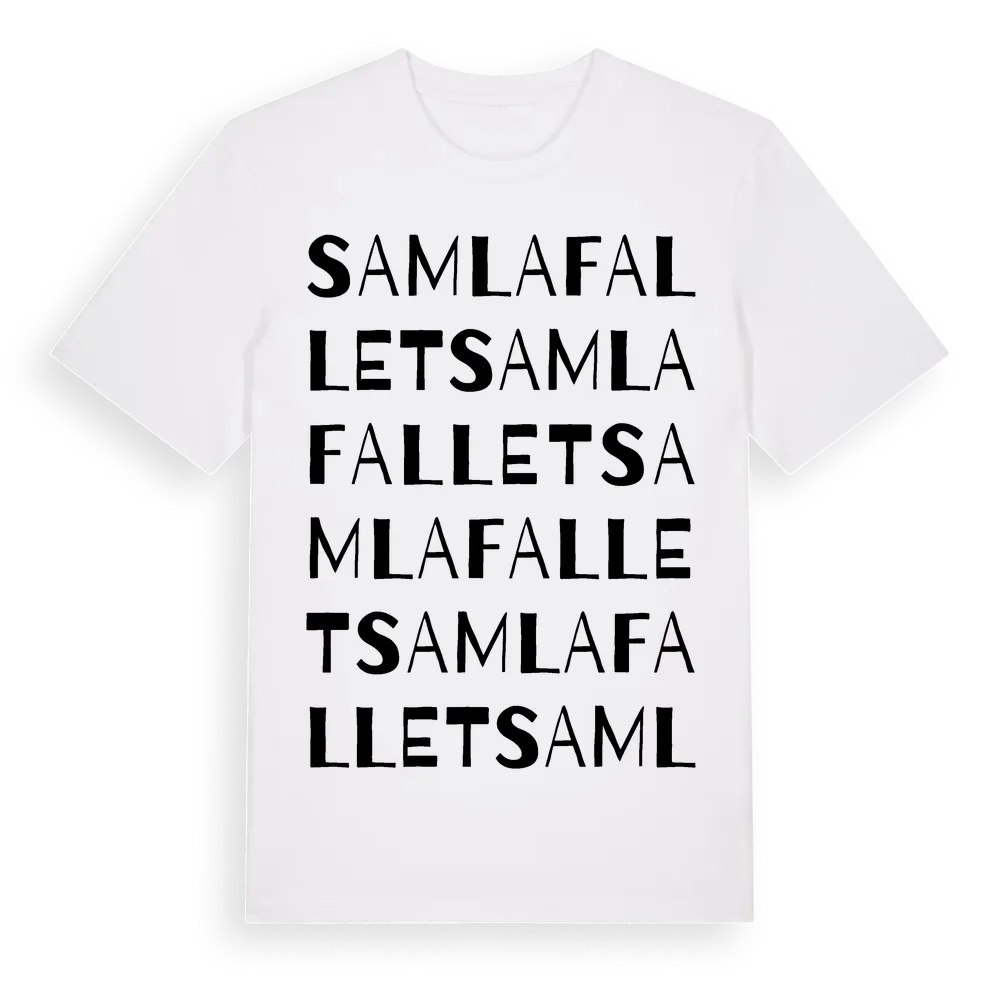 Samlafallet ordlek t-shirt är inspirerad av Samlafallet i Örebro län, Sverige. Tröjan är designad för dig som har en speciell koppling till platsen – oavsett om du bor här, har rötterna här eller bara älskar Samlafallet.