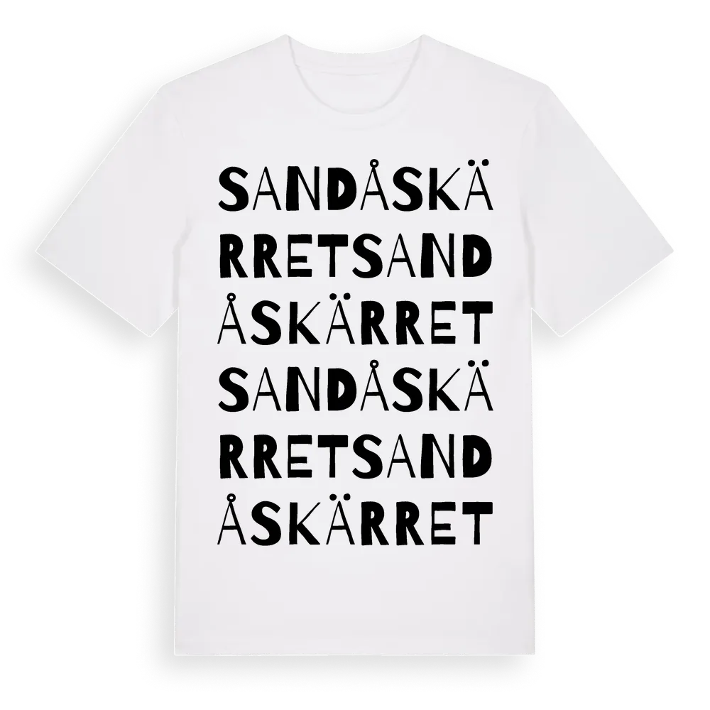 Sandåskärret ordlek t-shirt är inspirerad av Sandåskärret i Örebro län, Sverige. Tröjan är designad för dig som har en speciell koppling till platsen – oavsett om du bor här, har rötterna här eller bara älskar Sandåskärret.
