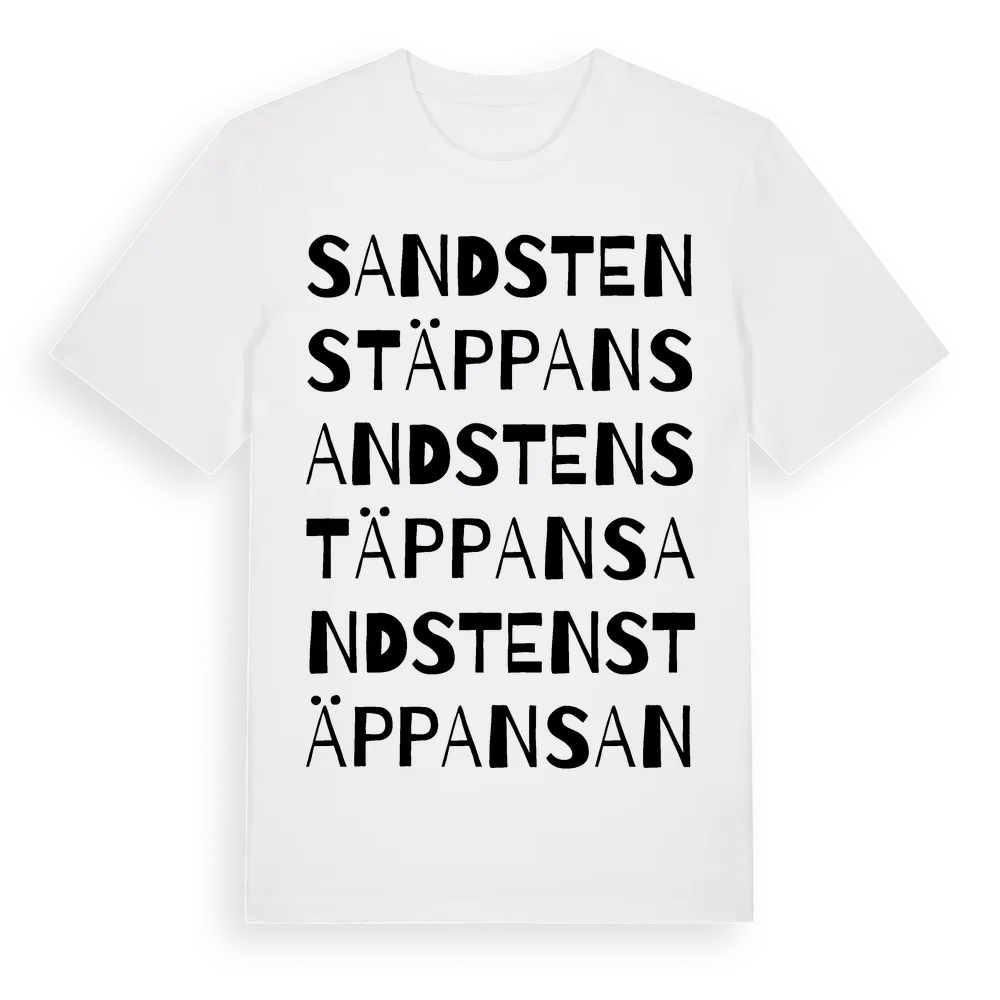 En ordlek byggd på Sandstenstäppans namn. Subtilt och klurig – ett motiv som bara de som verkligen känner platsen fullt ut förstår. Premium bomull, unisex – från Sandstenstäppan i Örebro län.