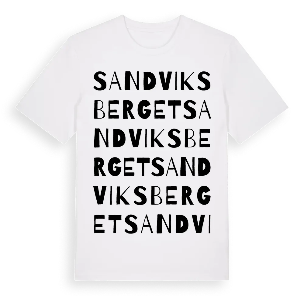 Sandviksberget ordlek t-shirt är inspirerad av Sandviksberget i Örebro län, Sverige. Tröjan är designad för dig som har en speciell koppling till platsen – oavsett om du bor här, har rötterna här eller bara älskar Sandviksberget.
