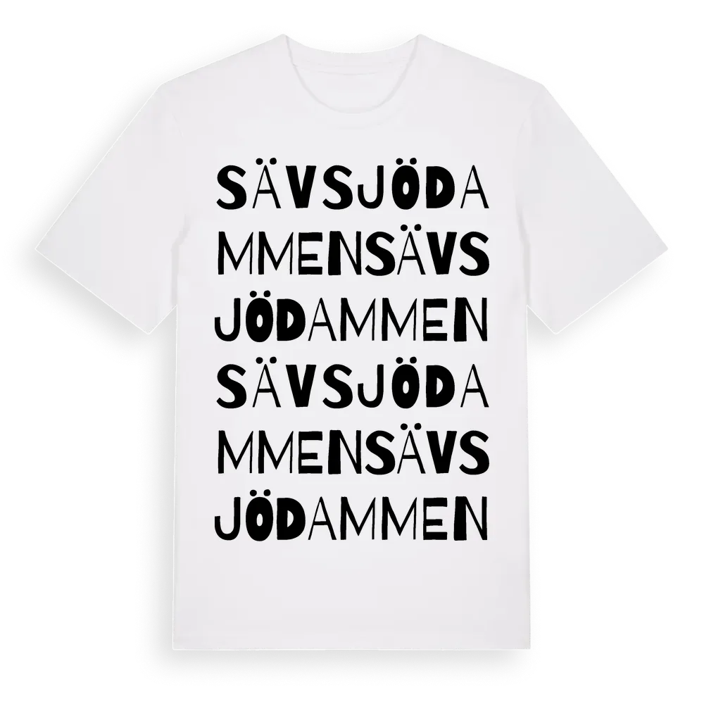 Sävsjödammen ordlek t-shirt är inspirerad av Sävsjödammen i Örebro län, Sverige. Tröjan är designad för dig som har en speciell koppling till platsen – oavsett om du bor här, har rötterna här eller bara älskar Sävsjödammen.