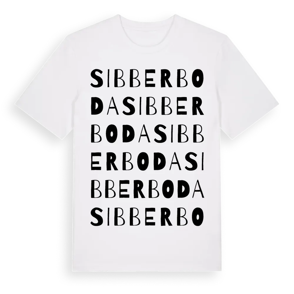 Sibberboda ordlek t-shirt är inspirerad av Sibberboda i Örebro län, Sverige. Tröjan är designad för dig som har en speciell koppling till platsen – oavsett om du bor här, har rötterna här eller bara älskar Sibberboda.