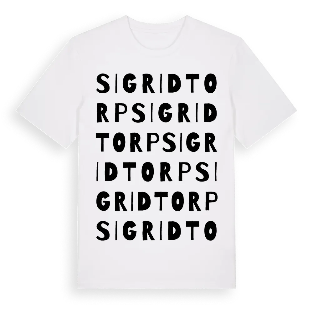 Sigridtorp ordlek t-shirt är inspirerad av Sigridtorp i Örebro län, Sverige. Tröjan är designad för dig som har en speciell koppling till platsen – oavsett om du bor här, har rötterna här eller bara älskar Sigridtorp.