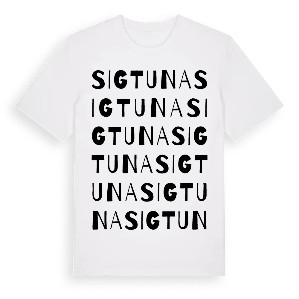 Sigtuna ordlek t-shirt är inspirerad av byn Sigtuna i Örebro län, Sverige. Tröjan är designad för dig som har en speciell koppling till platsen – oavsett om du bor här, har rötterna här eller bara älskar Sigtuna.