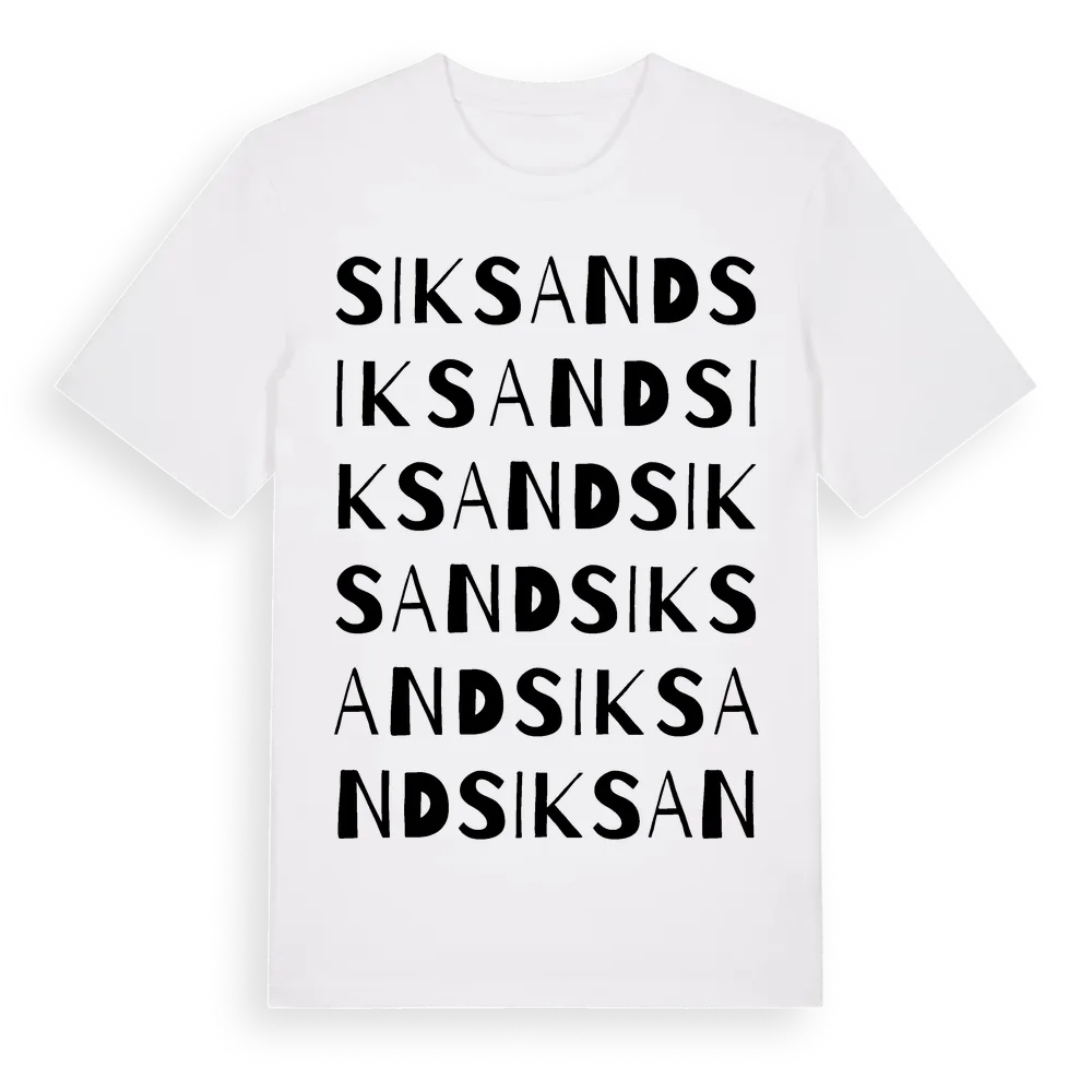 Siksand ordlek t-shirt är inspirerad av Siksand i Örebro län, Sverige. Tröjan är designad för dig som har en speciell koppling till platsen – oavsett om du bor här, har rötterna här eller bara älskar Siksand.