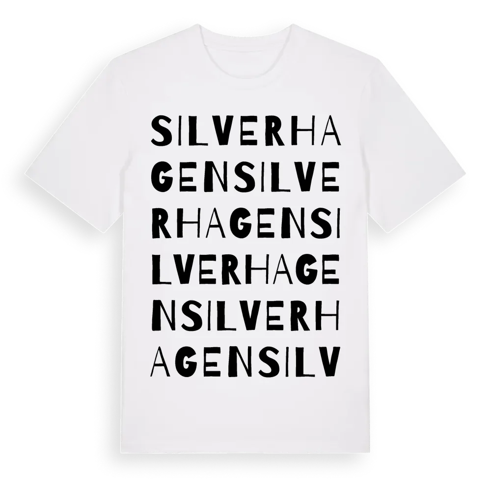 Silverhagen ordlek t-shirt är inspirerad av stadsdelen Silverhagen i Örebro län, Sverige. Tröjan är designad för dig som har en speciell koppling till platsen – oavsett om du bor här, har rötterna här eller bara älskar Silverhagen.