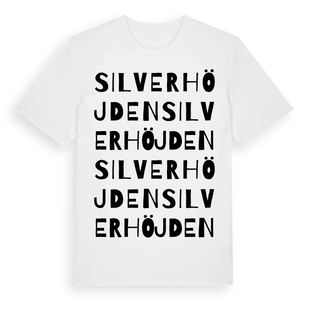Silverhöjden ordlek t-shirt är inspirerad av byn Silverhöjden i Örebro län, Sverige. Tröjan är designad för dig som har en speciell koppling till platsen – oavsett om du bor här, har rötterna här eller bara älskar Silverhöjden.