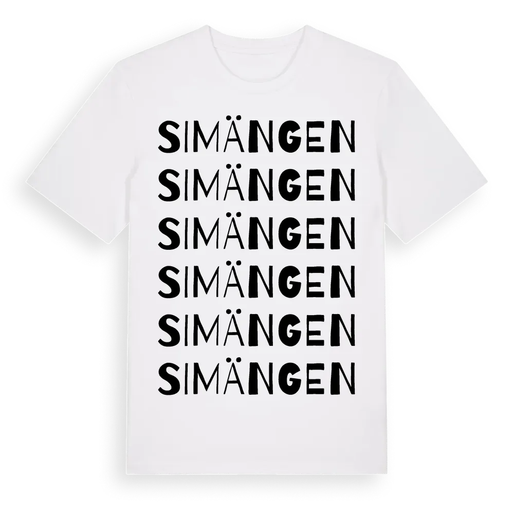 Simängen ordlek t-shirt är inspirerad av Simängen i Örebro län, Sverige. Tröjan är designad för dig som har en speciell koppling till platsen – oavsett om du bor här, har rötterna här eller bara älskar Simängen.