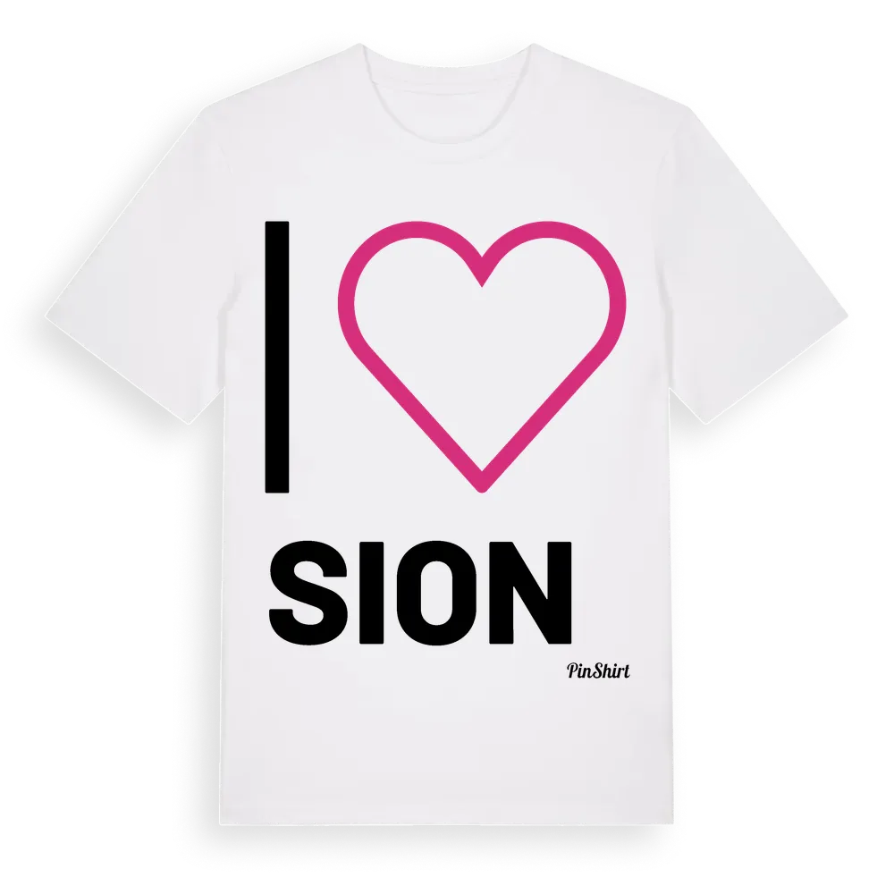 Det klassiska "I ❤ Sion"-motivet i stort format som täcker hela bröstet. För dig som vill visa kärleken till Sion på riktigt. Premium bomull, unisex – från Sion i Örebro län.