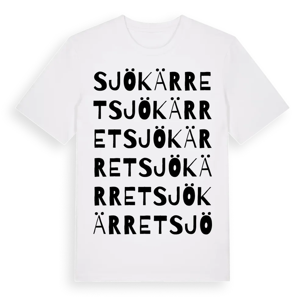 Sjökärret ordlek t-shirt är inspirerad av Sjökärret i Örebro län, Sverige. Tröjan är designad för dig som har en speciell koppling till platsen – oavsett om du bor här, har rötterna här eller bara älskar Sjökärret.