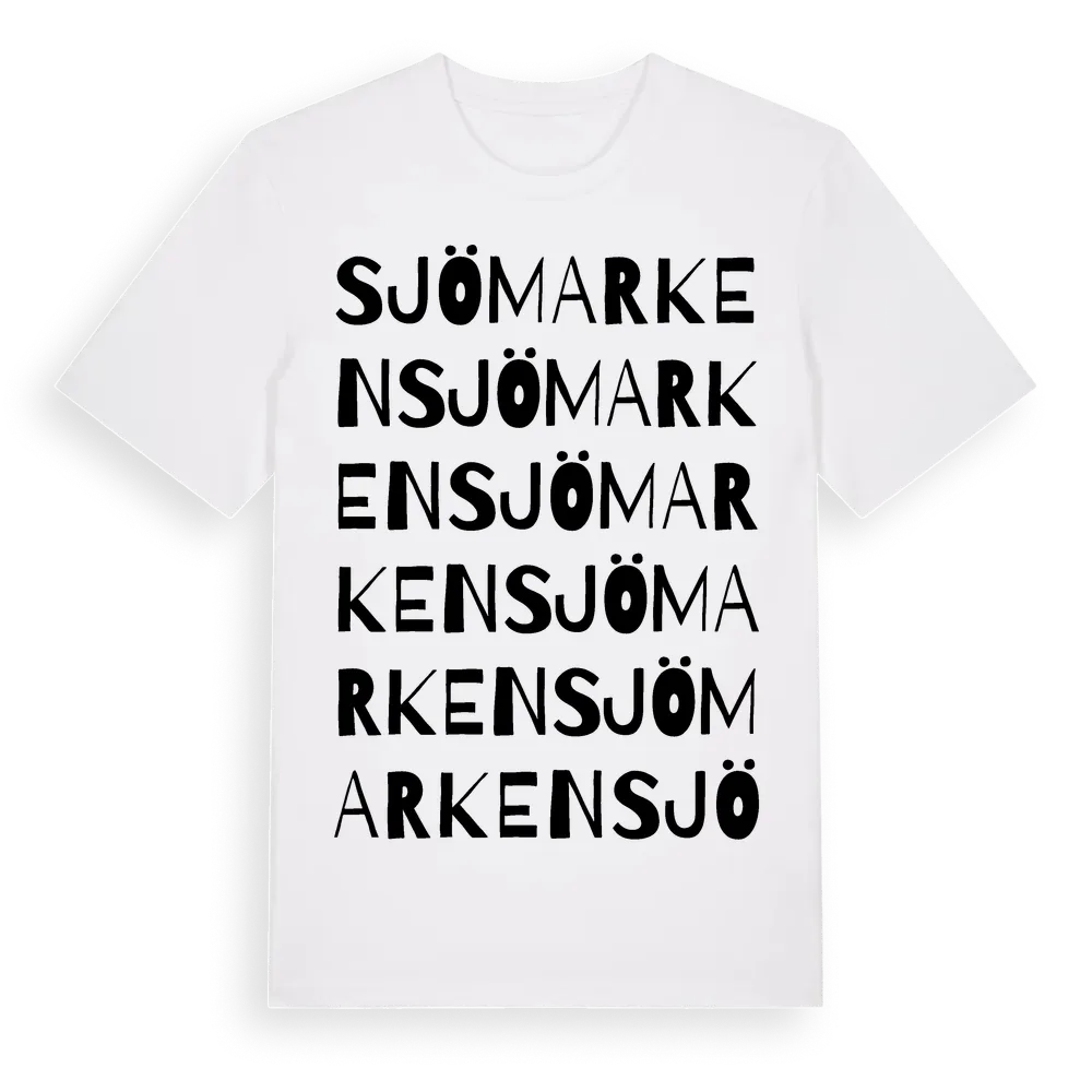 Sjömarken ordlek t-shirt är inspirerad av Sjömarken i Örebro län, Sverige. Tröjan är designad för dig som har en speciell koppling till platsen – oavsett om du bor här, har rötterna här eller bara älskar Sjömarken.