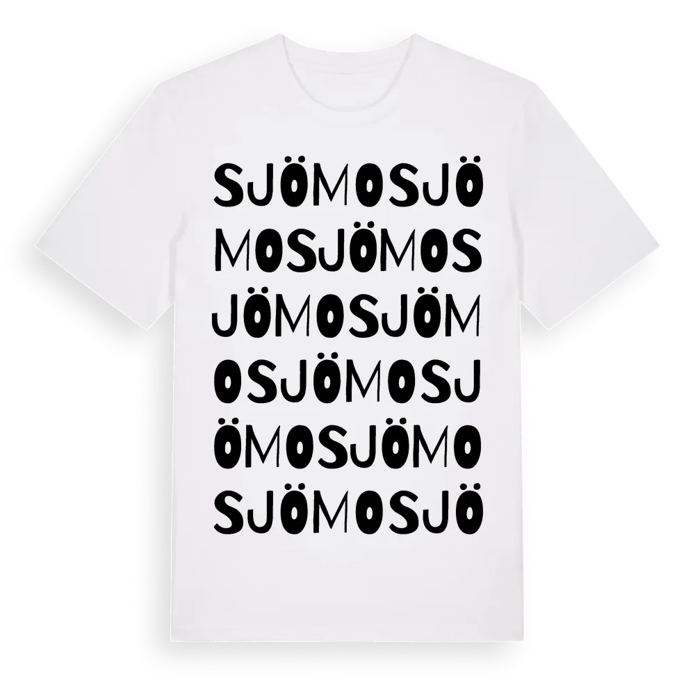 Sjömo ordlek t-shirt är inspirerad av Sjömo i Örebro län, Sverige. Tröjan är designad för dig som har en speciell koppling till platsen – oavsett om du bor här, har rötterna här eller bara älskar Sjömo.