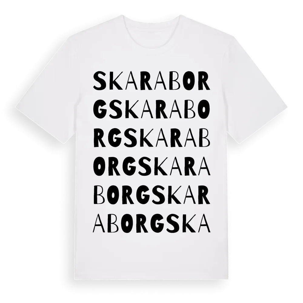 Skaraborg ordlek t-shirt är inspirerad av Skaraborg i Örebro län, Sverige. Tröjan är designad för dig som har en speciell koppling till platsen – oavsett om du bor här, har rötterna här eller bara älskar Skaraborg.
