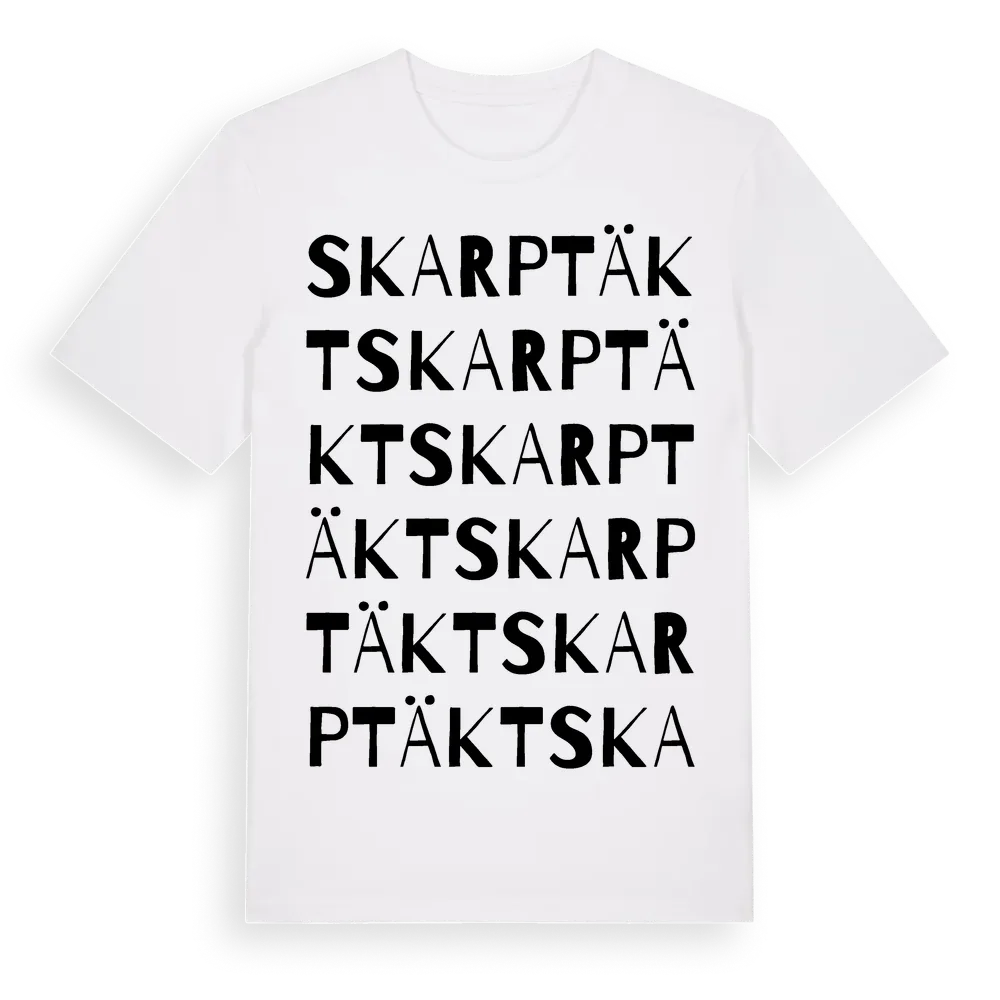 Skarptäkt ordlek t-shirt är inspirerad av Skarptäkt i Örebro län, Sverige. Tröjan är designad för dig som har en speciell koppling till platsen – oavsett om du bor här, har rötterna här eller bara älskar Skarptäkt.