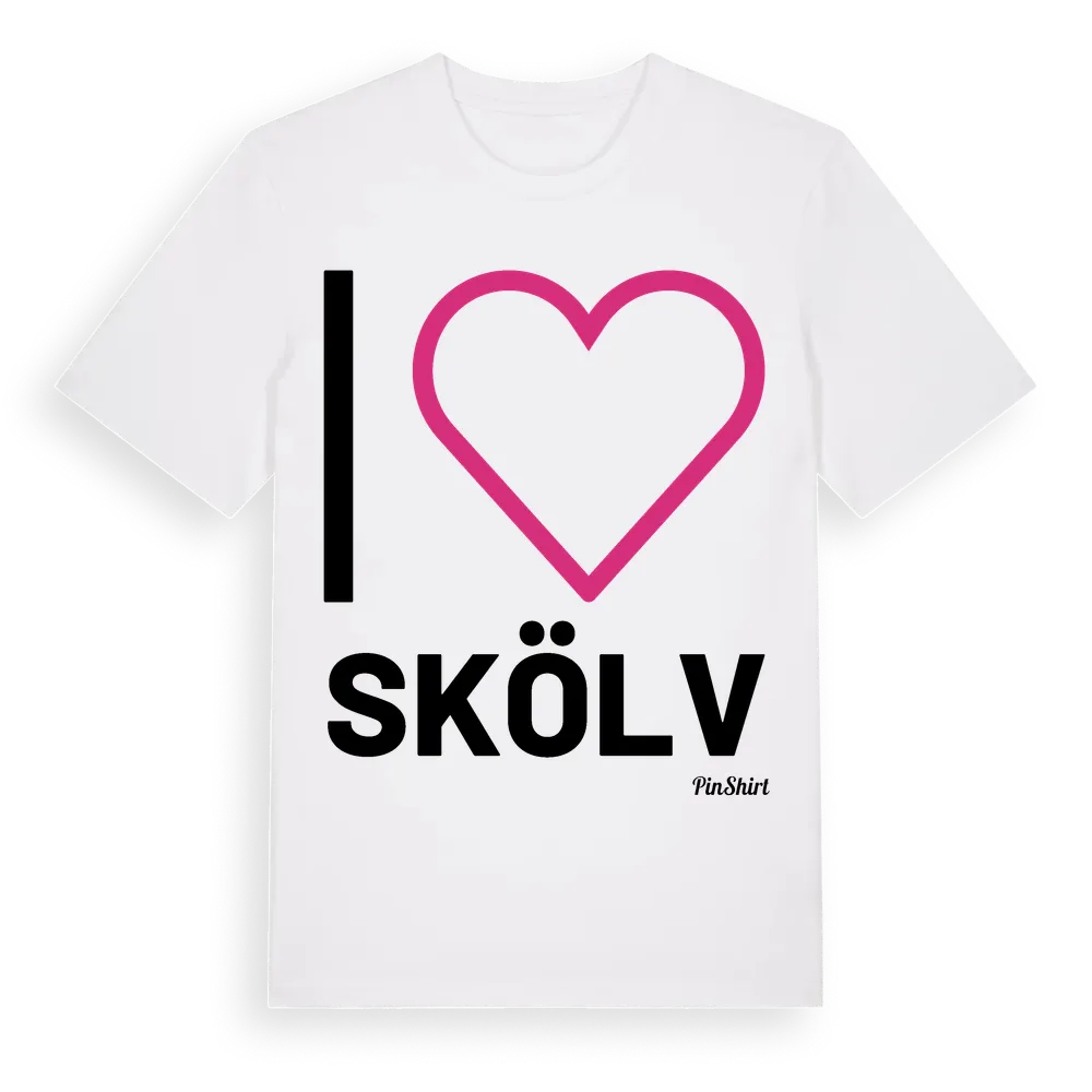 Det klassiska "I ❤ Skölv"-motivet i stort format som täcker hela bröstet. För dig som vill visa kärleken till Skölv på riktigt. Premium bomull, unisex – från byn Skölv i Örebro län.