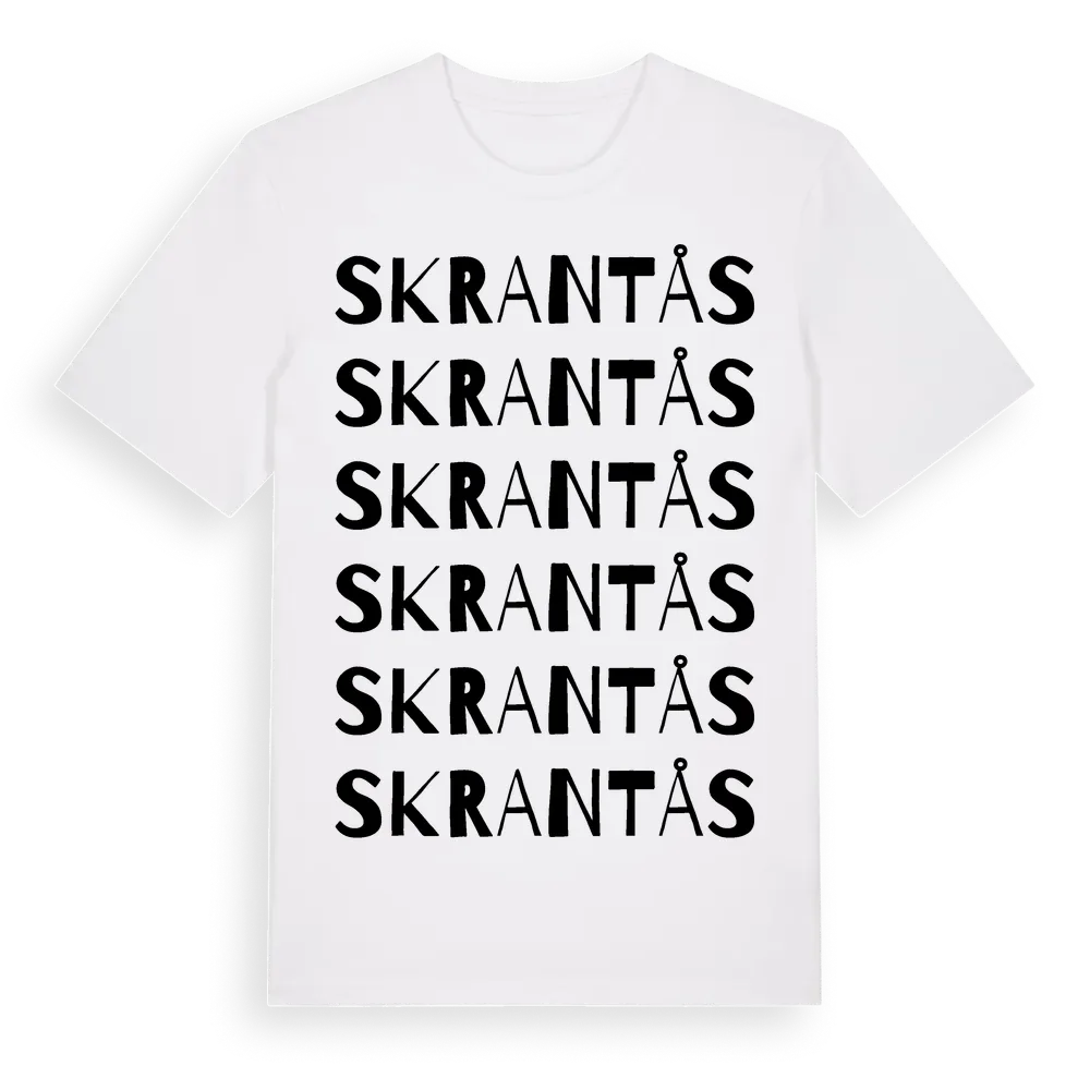 Skrantås ordlek t-shirt är inspirerad av Skrantås i Örebro län, Sverige. Tröjan är designad för dig som har en speciell koppling till platsen – oavsett om du bor här, har rötterna här eller bara älskar Skrantås.