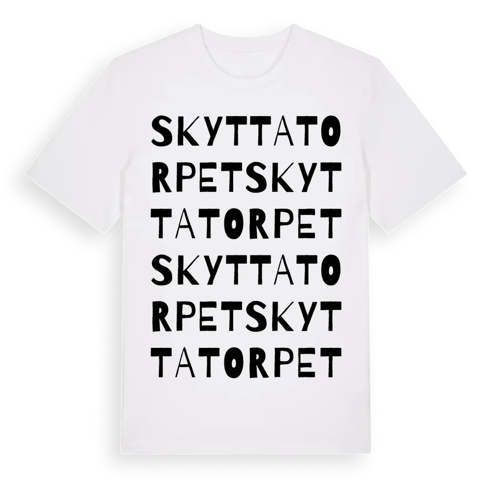 Skyttatorpet ordlek t-shirt är inspirerad av Skyttatorpet i Örebro län, Sverige. Tröjan är designad för dig som har en speciell koppling till platsen – oavsett om du bor här, har rötterna här eller bara älskar Skyttatorpet.