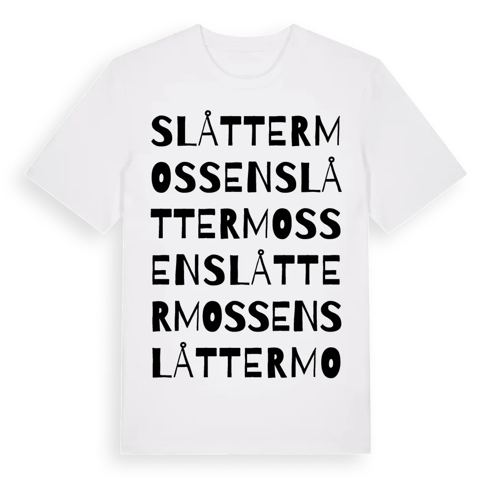 Slåttermossen ordlek t-shirt är inspirerad av byn Slåttermossen i Örebro län, Sverige. Tröjan är designad för dig som har en speciell koppling till platsen – oavsett om du bor här, har rötterna här eller bara älskar Slåttermossen.