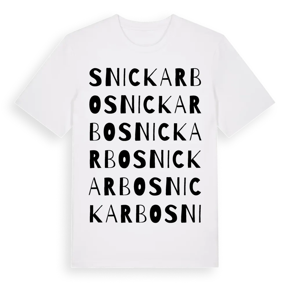 Snickarbo ordlek t-shirt är inspirerad av Snickarbo i Örebro län, Sverige. Tröjan är designad för dig som har en speciell koppling till platsen – oavsett om du bor här, har rötterna här eller bara älskar Snickarbo.