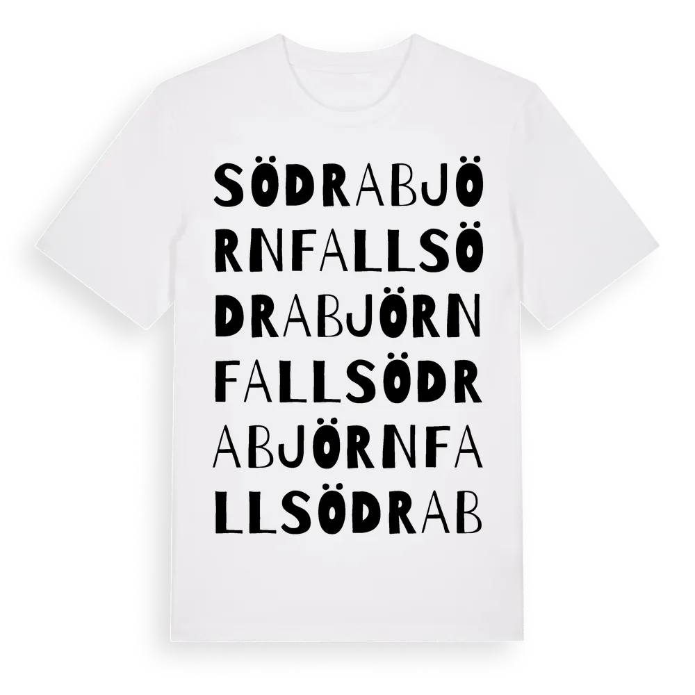 Södra Björnfall ordlek t-shirt är inspirerad av byn Södra Björnfall i Örebro län, Sverige. Tröjan är designad för dig som har en speciell koppling till platsen – oavsett om du bor här, har rötterna här eller bara älskar Södra Björnfall.