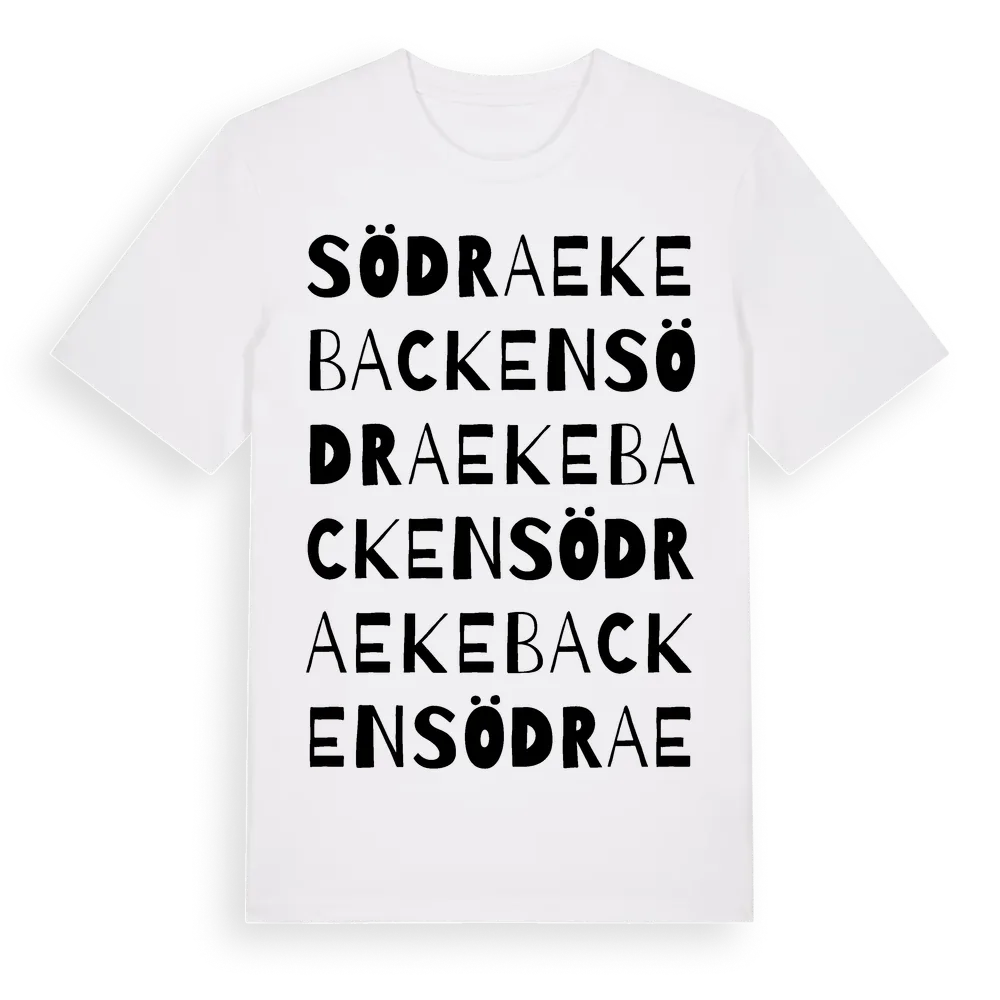 Södra Ekebacken ordlek t-shirt är inspirerad av Södra Ekebacken i Örebro län, Sverige. Tröjan är designad för dig som har en speciell koppling till platsen – oavsett om du bor här, har rötterna här eller bara älskar Södra Ekebacken.