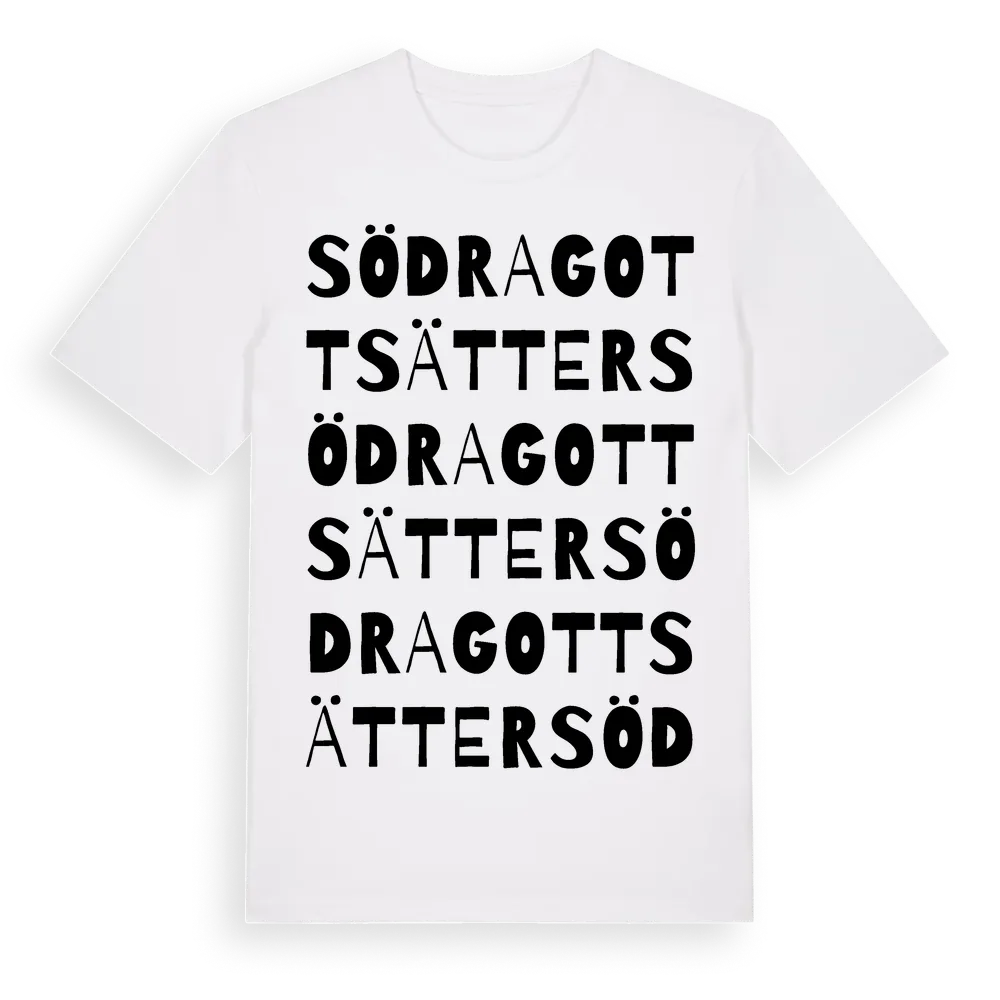 Södra Gottsätter ordlek t-shirt är inspirerad av Södra Gottsätter i Örebro län, Sverige. Tröjan är designad för dig som har en speciell koppling till platsen – oavsett om du bor här, har rötterna här eller bara älskar Södra Gottsätter.