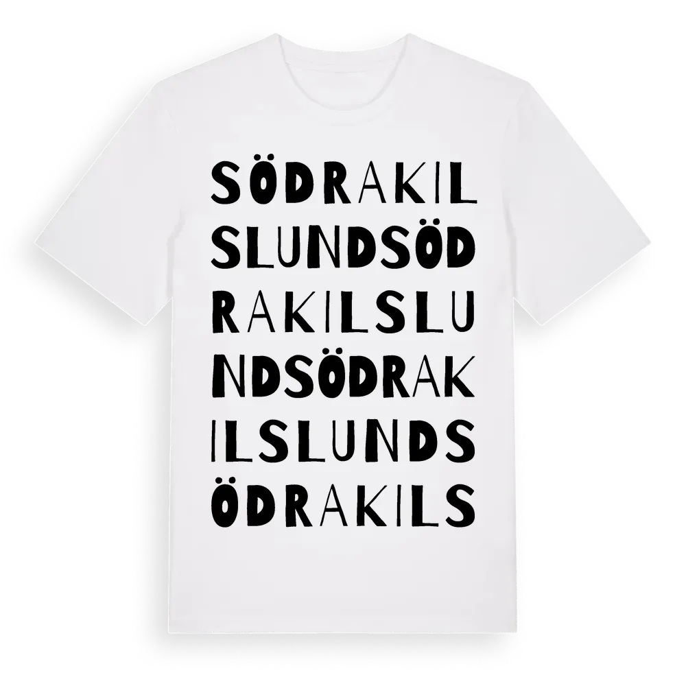 Södra Kilslund ordlek t-shirt är inspirerad av Södra Kilslund i Örebro län, Sverige. Tröjan är designad för dig som har en speciell koppling till platsen – oavsett om du bor här, har rötterna här eller bara älskar Södra Kilslund.