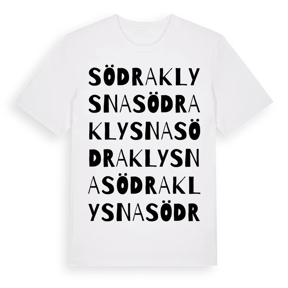 Södra Klysna ordlek t-shirt är inspirerad av byn Södra Klysna i Örebro län, Sverige. Tröjan är designad för dig som har en speciell koppling till platsen – oavsett om du bor här, har rötterna här eller bara älskar Södra Klysna.
