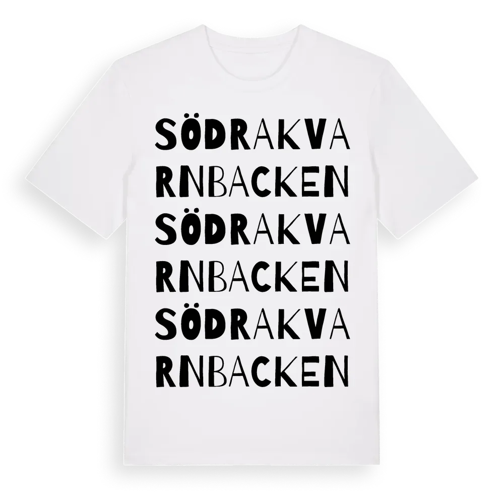 Södra Kvarnbacken ordlek t-shirt är inspirerad av Södra Kvarnbacken i Örebro län, Sverige. Tröjan är designad för dig som har en speciell koppling till platsen – oavsett om du bor här, har rötterna här eller bara älskar Södra Kvarnbacken.
