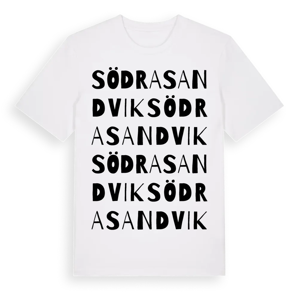 Södra Sandvik ordlek t-shirt är inspirerad av Södra Sandvik i Örebro län, Sverige. Tröjan är designad för dig som har en speciell koppling till platsen – oavsett om du bor här, har rötterna här eller bara älskar Södra Sandvik.