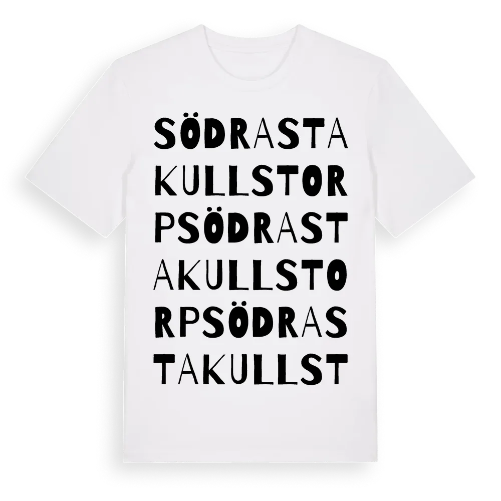 Södra Stakullstorp ordlek t-shirt är inspirerad av Södra Stakullstorp i Örebro län, Sverige. Tröjan är designad för dig som har en speciell koppling till platsen – oavsett om du bor här, har rötterna här eller bara älskar Södra Stakullstorp.