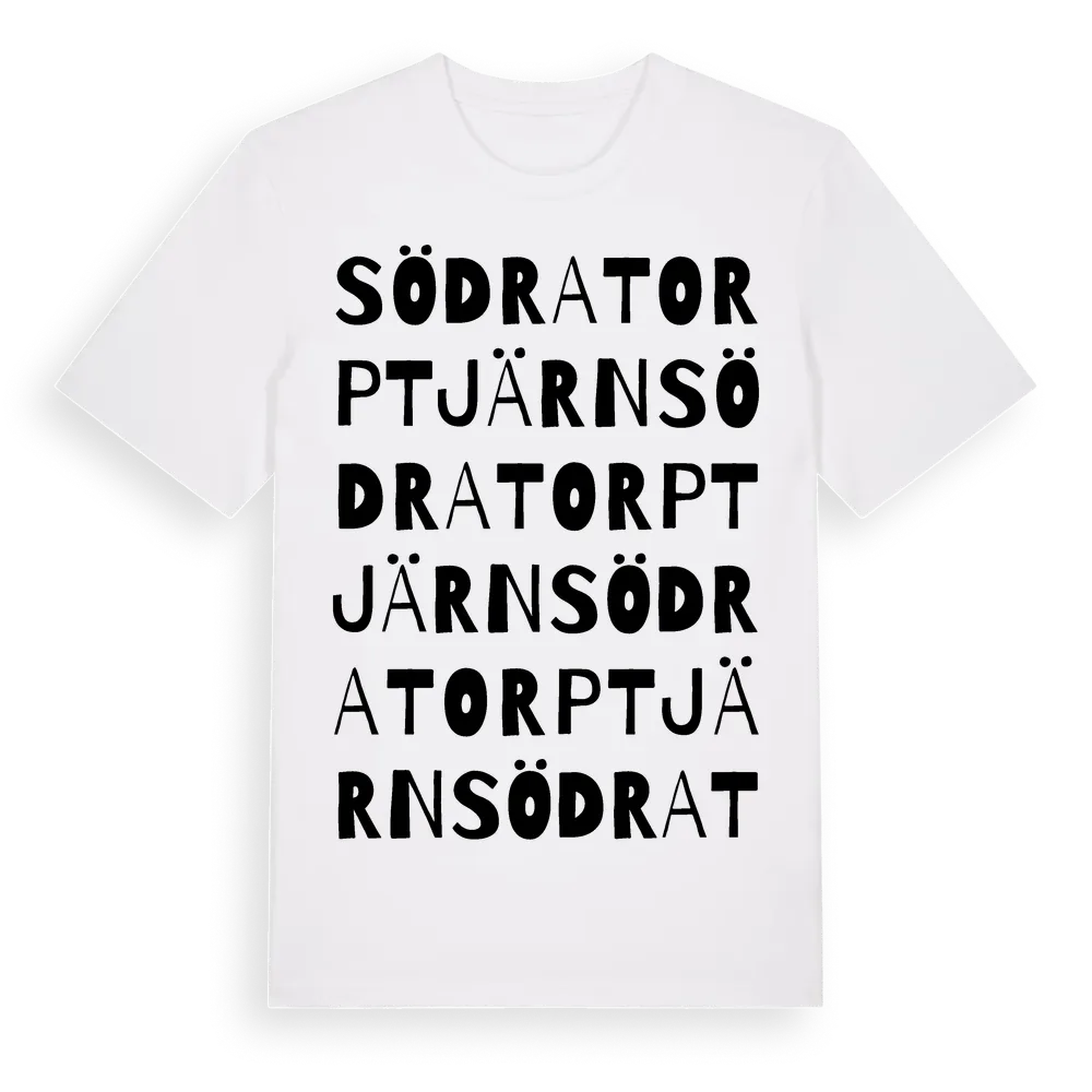 Södra Torptjärn ordlek t-shirt är inspirerad av Södra Torptjärn i Örebro län, Sverige. Tröjan är designad för dig som har en speciell koppling till platsen – oavsett om du bor här, har rötterna här eller bara älskar Södra Torptjärn.