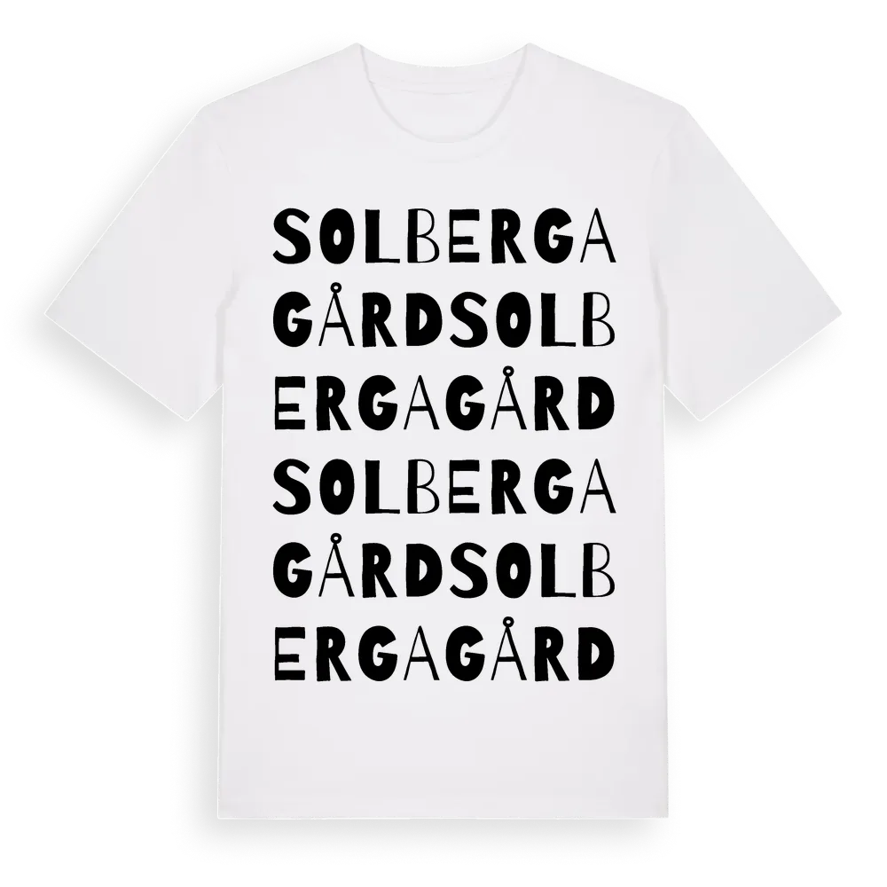 Solberga Gård ordlek t-shirt är inspirerad av Solberga Gård i Örebro län, Sverige. Tröjan är designad för dig som har en speciell koppling till platsen – oavsett om du bor här, har rötterna här eller bara älskar Solberga Gård.
