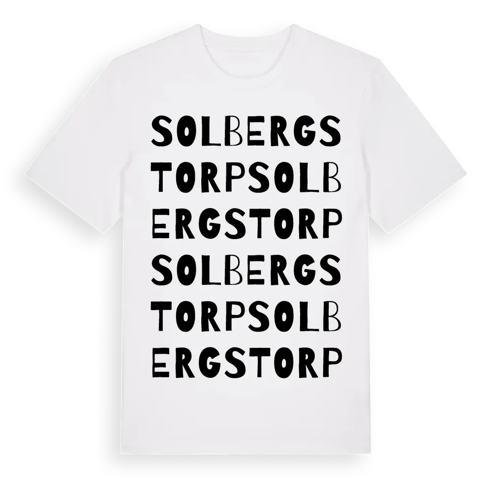 Solbergstorp ordlek t-shirt är inspirerad av Solbergstorp i Örebro län, Sverige. Tröjan är designad för dig som har en speciell koppling till platsen – oavsett om du bor här, har rötterna här eller bara älskar Solbergstorp.