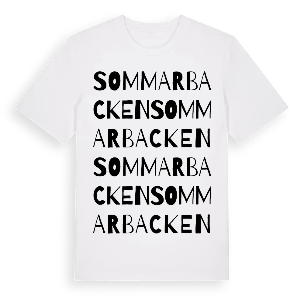 Sommarbacken ordlek t-shirt är inspirerad av Sommarbacken i Örebro län, Sverige. Tröjan är designad för dig som har en speciell koppling till platsen – oavsett om du bor här, har rötterna här eller bara älskar Sommarbacken.