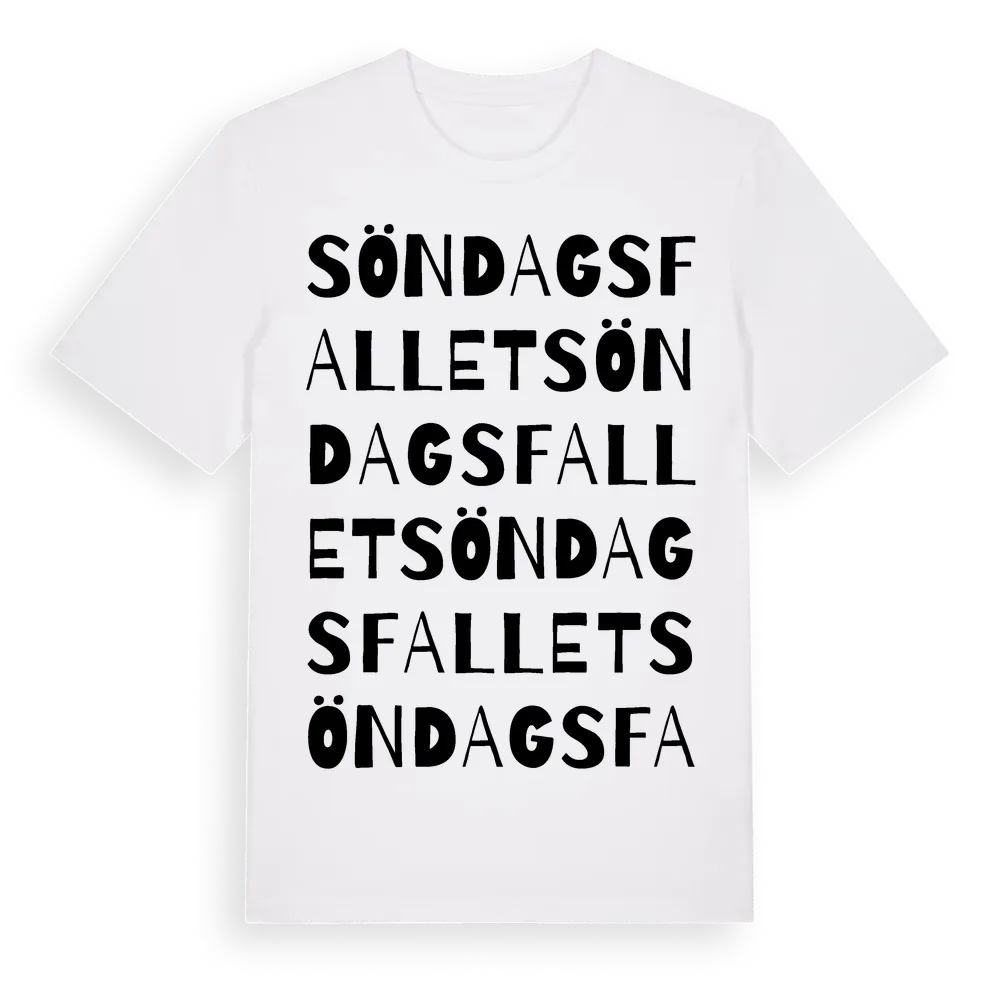 Söndagsfallet ordlek t-shirt är inspirerad av Söndagsfallet i Örebro län, Sverige. Tröjan är designad för dig som har en speciell koppling till platsen – oavsett om du bor här, har rötterna här eller bara älskar Söndagsfallet.