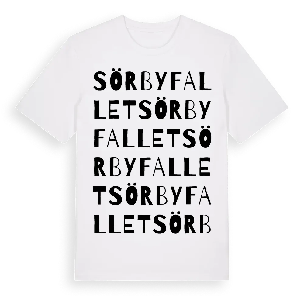 Sörbyfallet ordlek t-shirt är inspirerad av Sörbyfallet i Örebro län, Sverige. Tröjan är designad för dig som har en speciell koppling till platsen – oavsett om du bor här, har rötterna här eller bara älskar Sörbyfallet.