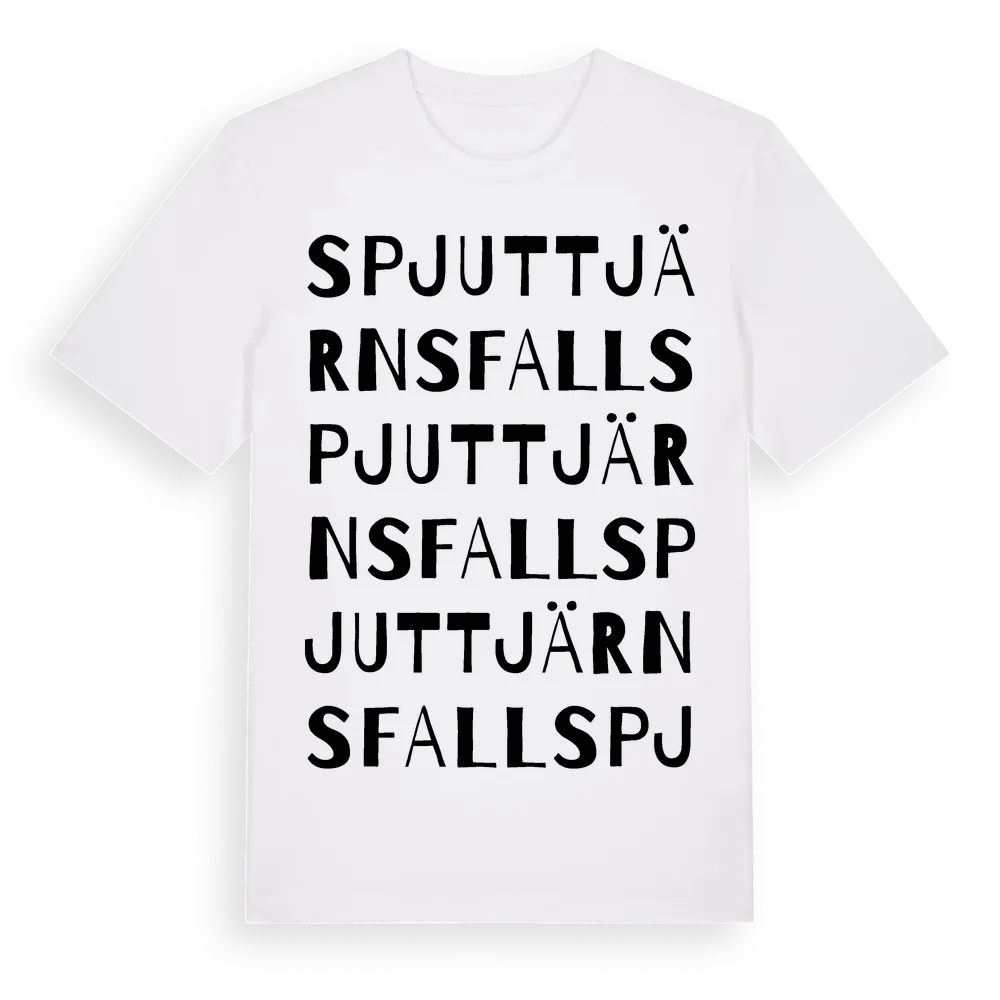 Spjuttjärnsfall ordlek t-shirt är inspirerad av Spjuttjärnsfall i Örebro län, Sverige. Tröjan är designad för dig som har en speciell koppling till platsen – oavsett om du bor här, har rötterna här eller bara älskar Spjuttjärnsfall.