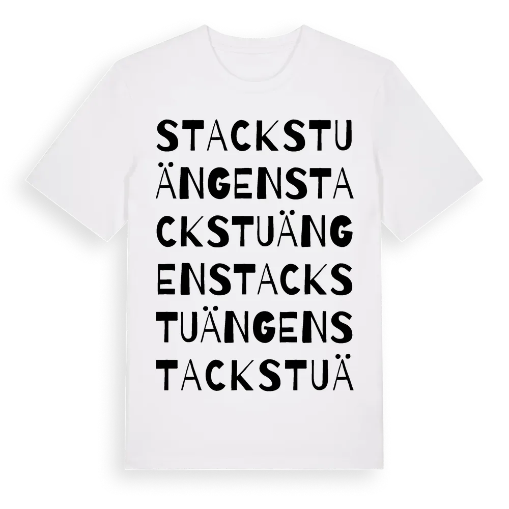 Stackstuängen ordlek t-shirt är inspirerad av Stackstuängen i Örebro län, Sverige. Tröjan är designad för dig som har en speciell koppling till platsen – oavsett om du bor här, har rötterna här eller bara älskar Stackstuängen.