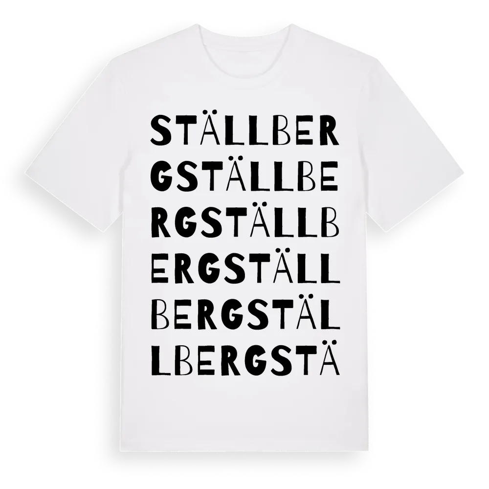 Ställberg ordlek t-shirt är inspirerad av byn Ställberg i Örebro län, Sverige. Tröjan är designad för dig som har en speciell koppling till platsen – oavsett om du bor här, har rötterna här eller bara älskar Ställberg.
