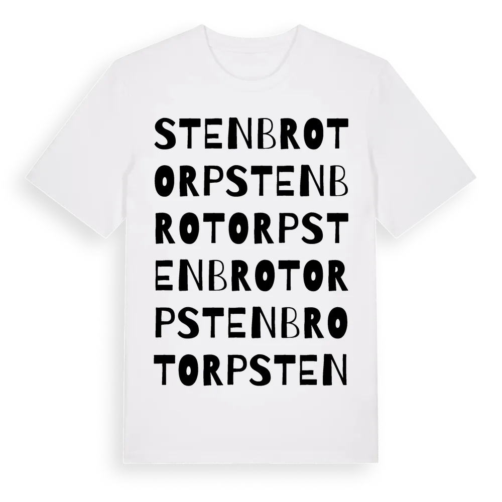 Stenbrotorp ordlek t-shirt är inspirerad av byn Stenbrotorp i Örebro län, Sverige. Tröjan är designad för dig som har en speciell koppling till platsen – oavsett om du bor här, har rötterna här eller bara älskar Stenbrotorp.