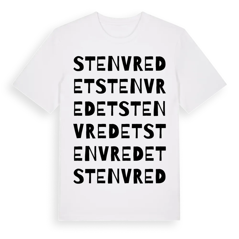 Stenvredet ordlek t-shirt är inspirerad av Stenvredet i Örebro län, Sverige. Tröjan är designad för dig som har en speciell koppling till platsen – oavsett om du bor här, har rötterna här eller bara älskar Stenvredet.