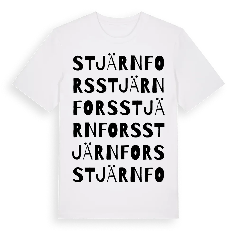 Stjärnfors ordlek t-shirt är inspirerad av byn Stjärnfors i Örebro län, Sverige. Tröjan är designad för dig som har en speciell koppling till platsen – oavsett om du bor här, har rötterna här eller bara älskar Stjärnfors.