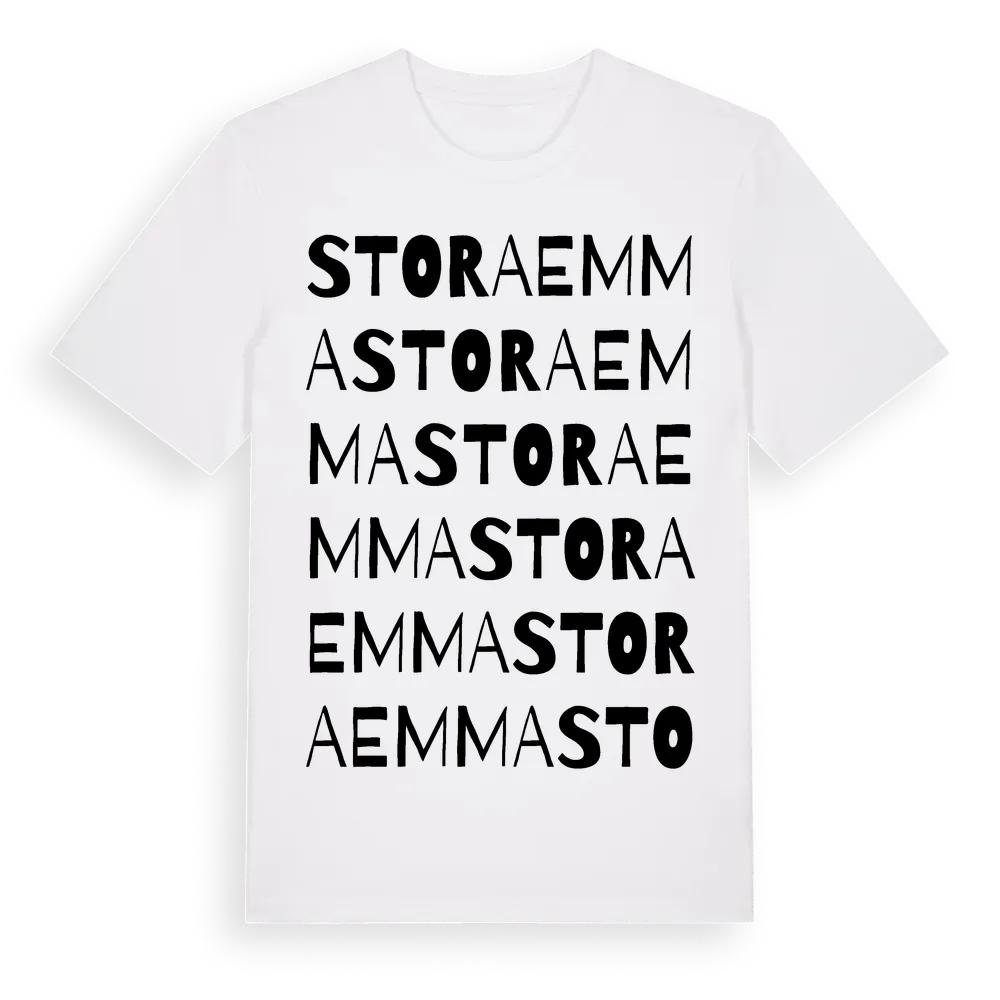 Stora Emma ordlek t-shirt är inspirerad av Stora Emma i Örebro län, Sverige. Tröjan är designad för dig som har en speciell koppling till platsen – oavsett om du bor här, har rötterna här eller bara älskar Stora Emma.
