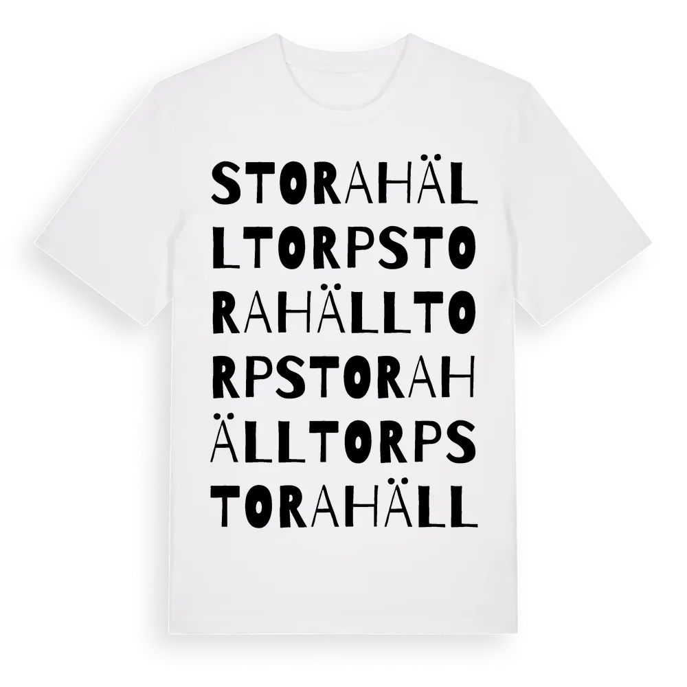 Stora Hälltorp ordlek t-shirt är inspirerad av stadsdelen Stora Hälltorp i Örebro län, Sverige. Tröjan är designad för dig som har en speciell koppling till platsen – oavsett om du bor här, har rötterna här eller bara älskar Stora Hälltorp.