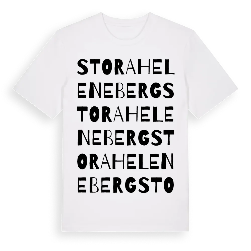 Stora Heleneberg ordlek t-shirt är inspirerad av Stora Heleneberg i Örebro län, Sverige. Tröjan är designad för dig som har en speciell koppling till platsen – oavsett om du bor här, har rötterna här eller bara älskar Stora Heleneberg.