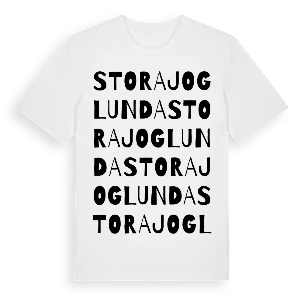 Stora Joglunda ordlek t-shirt är inspirerad av Stora Joglunda i Örebro län, Sverige. Tröjan är designad för dig som har en speciell koppling till platsen – oavsett om du bor här, har rötterna här eller bara älskar Stora Joglunda.