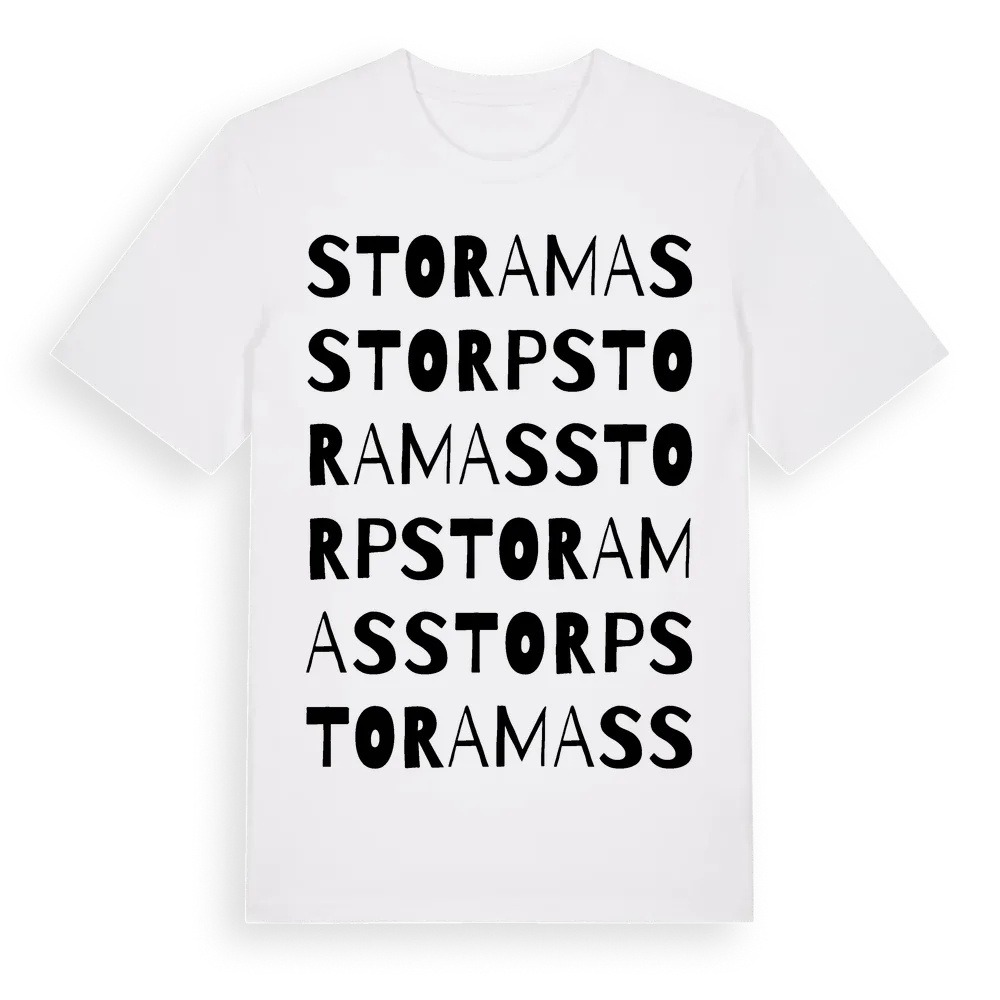 En ordlek byggd på Stora Masstorps namn. Subtilt och klurig – ett motiv som bara de som verkligen känner platsen fullt ut förstår. Premium bomull, unisex – från Stora Masstorp i Örebro län.
