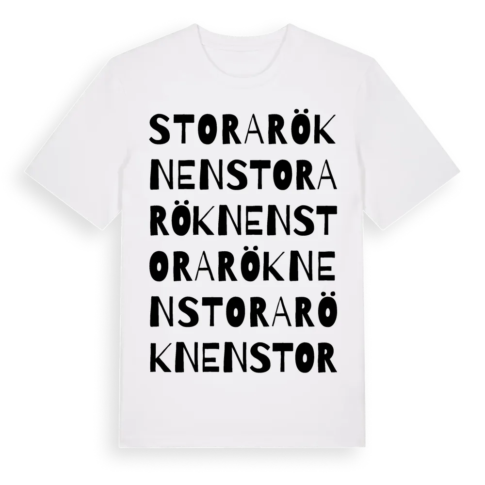 Stora Röknen ordlek t-shirt är inspirerad av ön Stora Röknen i Örebro län, Sverige. Tröjan är designad för dig som har en speciell koppling till platsen – oavsett om du bor här, har rötterna här eller bara älskar Stora Röknen.